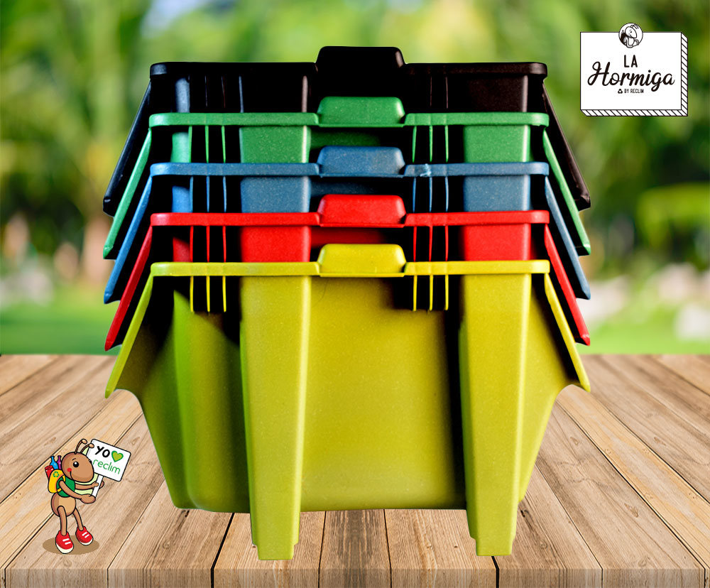 Kit de plástico reciclado, para separar tus residuos en el hogar.